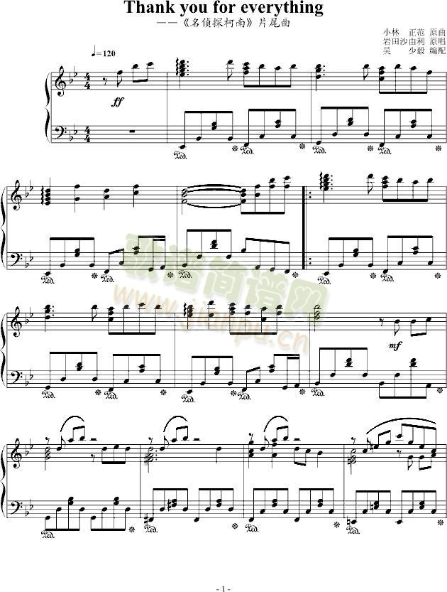thank you for every thing免费钢琴谱_五线谱:名侦探柯南 点击: 1000 图片可能经过缩放,手机长按或点开后长按保存,电脑鼠标右键保存.