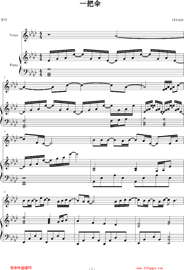 一把伞-183club免费钢琴谱_五线谱:未知 点击: 1000 图片可能经过缩放,手机长按或点开后长按保存,电脑鼠标右键保存.