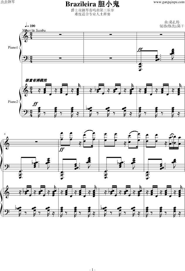 爵士双钢琴奏鸣曲第三乐章免费钢琴谱_五线谱:米约 点击: 1000 图片可能经过缩放,手机长按或点开后长按保存,电脑鼠标右键保存.