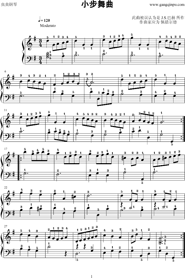 小步舞曲(G大调)-巴赫-全程指法-钢琴谱(钢琴曲)-巴赫免费钢琴谱_五线谱: 点击: 1000 图片可能经过缩放,手机长按或点开后长按保存,电脑鼠标右键保存.