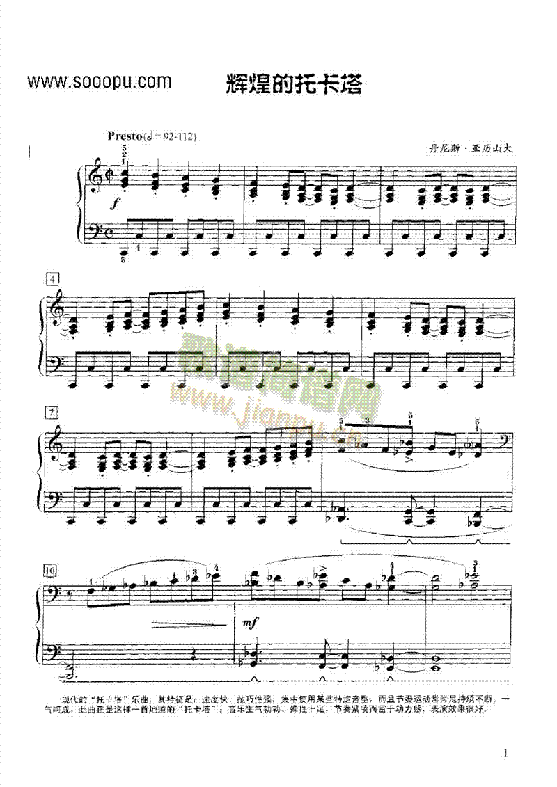 辉煌的托卡塔 键盘类 钢琴免费钢琴谱_五线谱:丹尼斯·亚历山大 点击: 1000 图片可能经过缩放,手机长按或点开后长按保存,电脑鼠标右键保存.