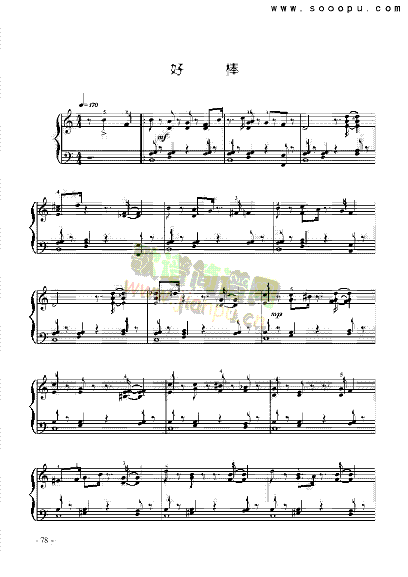 好棒 键盘类 钢琴免费钢琴谱_五线谱:爵士钢琴 点击: 1000 图片可能经过缩放,手机长按或点开后长按保存,电脑鼠标右键保存.