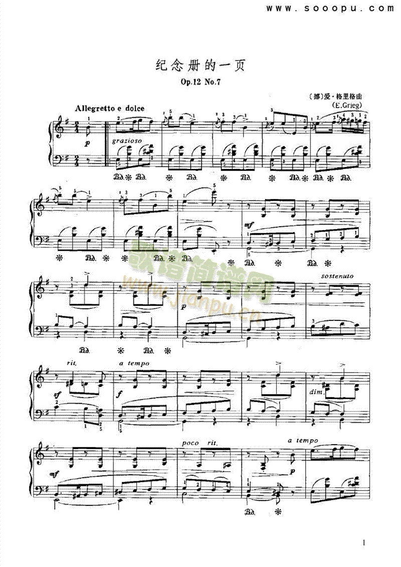 纪念册的一页 键盘类 钢琴免费钢琴谱_五线谱:爱·格里格 点击: 1000 图片可能经过缩放,手机长按或点开后长按保存,电脑鼠标右键保存.