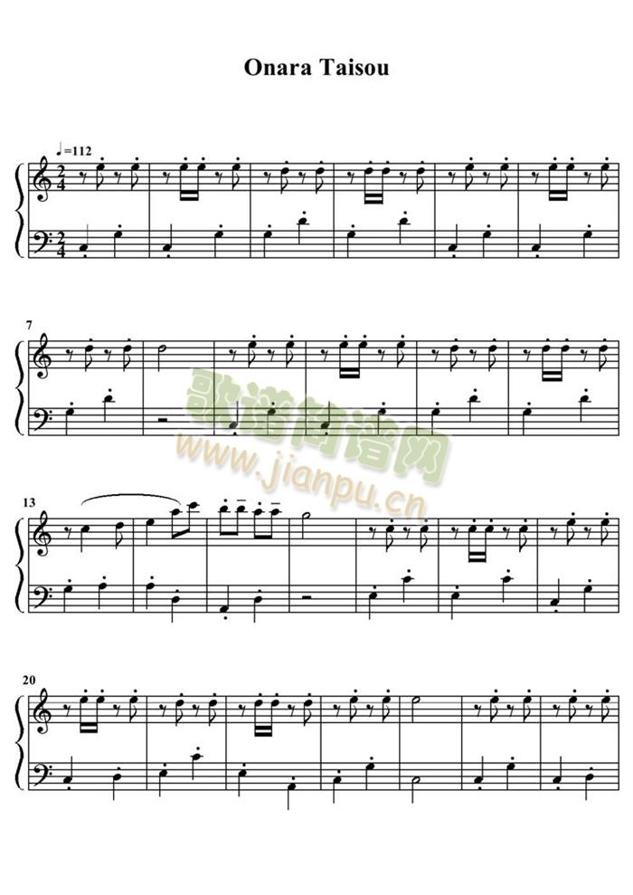 onara taisou免费钢琴谱_五线谱: 点击: 1000 图片可能经过缩放,手机长按或点开后长按保存,电脑鼠标右键保存.