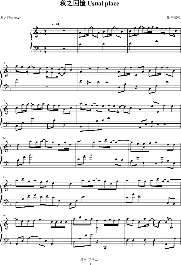 Usual place -秋之回憶2ed免费钢琴谱_五线谱:动漫影视 点击: 1000 图片可能经过缩放,手机长按或点开后长按保存,电脑鼠标右键保存.