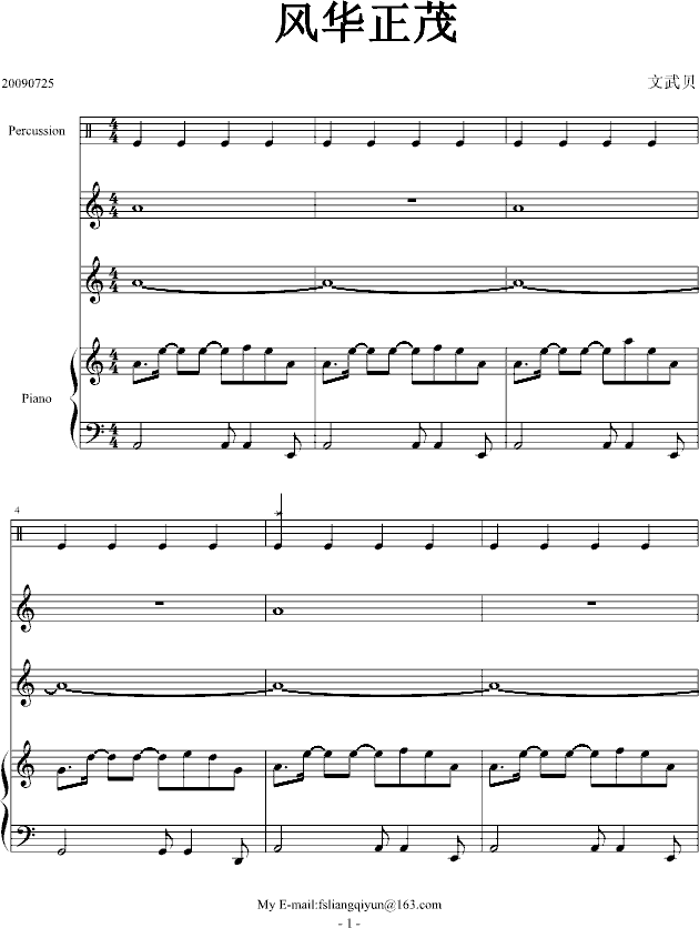 风华正茂-钢琴谱(钢琴曲)-文武贝免费钢琴谱_五线谱: 点击: 1000 图片可能经过缩放,手机长按或点开后长按保存,电脑鼠标右键保存.