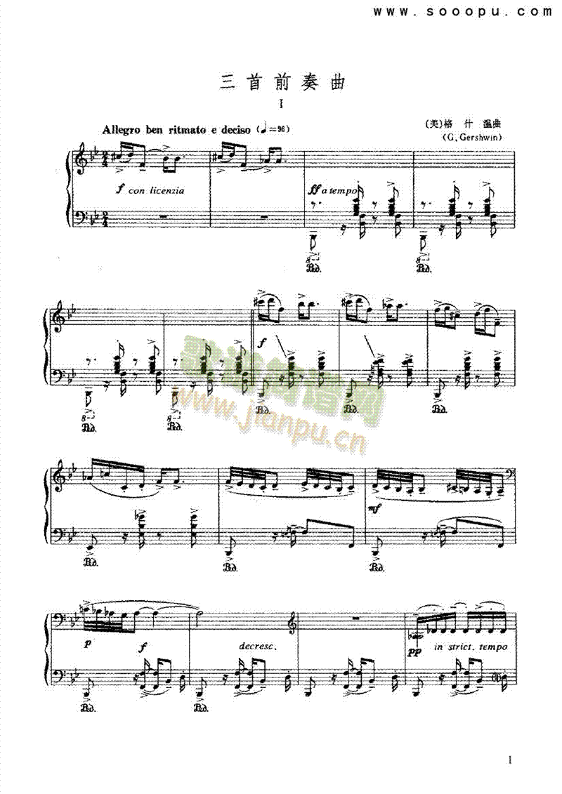 三首前奏曲 键盘类 钢琴免费钢琴谱_五线谱:格什温曲 点击: 1000 图片可能经过缩放,手机长按或点开后长按保存,电脑鼠标右键保存.