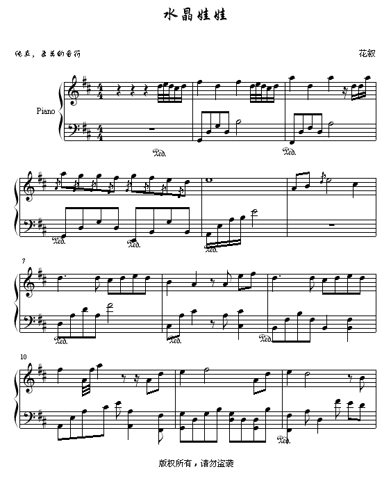 水晶娃娃免费钢琴谱_五线谱:花叙 点击: 1000 图片可能经过缩放,手机长按或点开后长按保存,电脑鼠标右键保存.