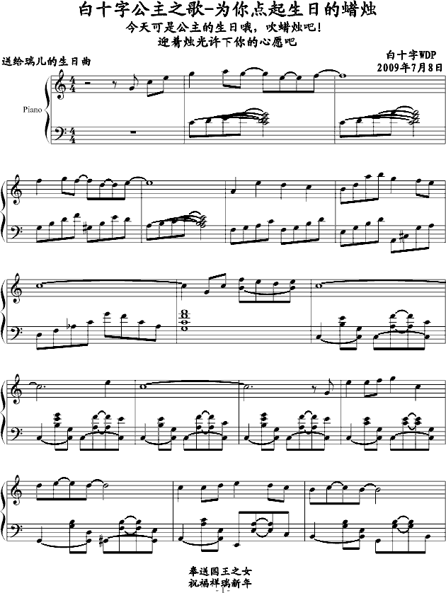 白十字公主生日歌-烛光之吻-钢琴谱(钢琴曲)-吴大鹏免费钢琴谱_五线谱: 点击: 1000 图片可能经过缩放,手机长按或点开后长按保存,电脑鼠标右键保存.