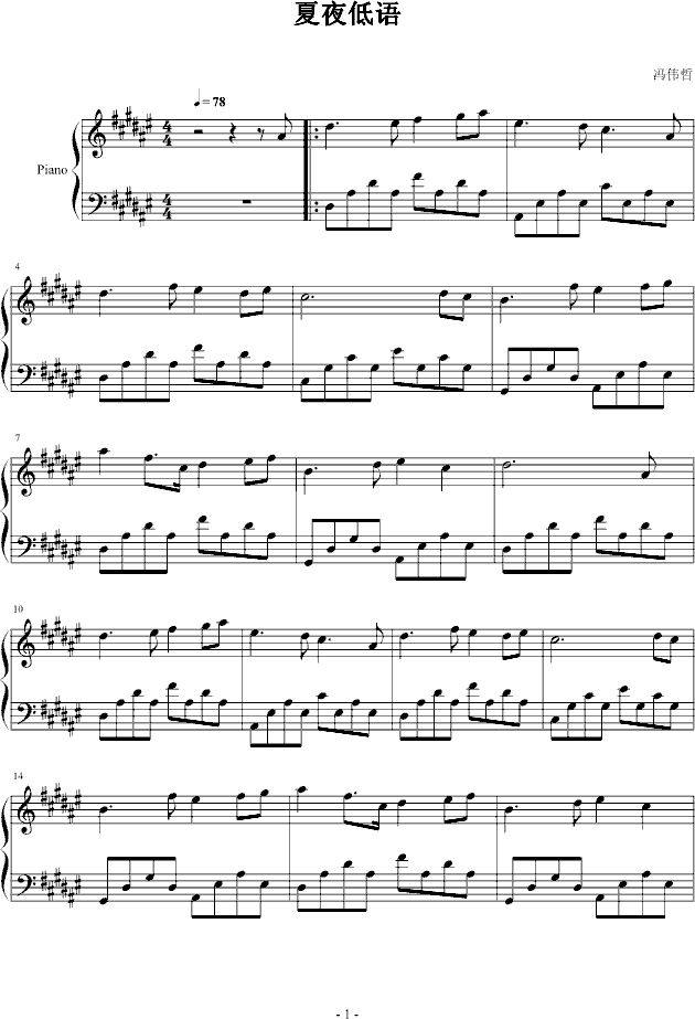 夏夜低语免费钢琴谱_五线谱/词曲:phagenphagen点击: 1000 图片可能经过缩放,手机长按或点开后长按保存,电脑鼠标右键保存.