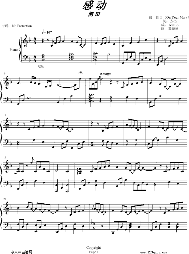 感动)-侧田免费钢琴谱_五线谱:未知 点击: 1000 图片可能经过缩放,手机长按或点开后长按保存,电脑鼠标右键保存.