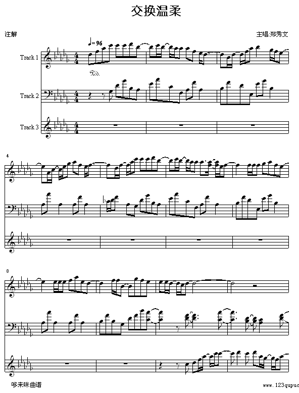 交换温柔-郑秀文免费钢琴谱_五线谱:未知 点击: 1000 图片可能经过缩放,手机长按或点开后长按保存,电脑鼠标右键保存.