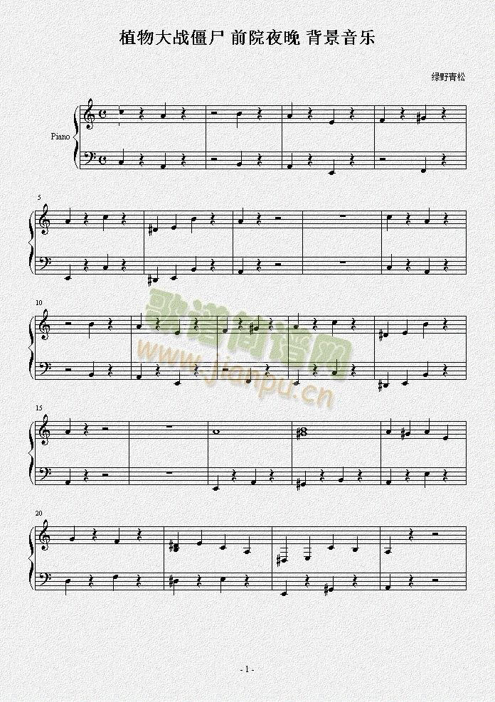 植物大战僵尸解前院夜晚背景音乐免费钢琴谱_五线谱: 点击: 1000 图片可能经过缩放,手机长按或点开后长按保存,电脑鼠标右键保存.