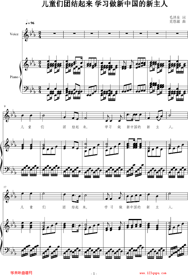 儿童们团结起来 -学习做新中国的新主人-词 竟恩源曲-竟恩源免费钢琴谱_五线谱:未知 点击: 1000 图片可能经过缩放,手机长按或点开后长按保存,电脑鼠标右键保存.