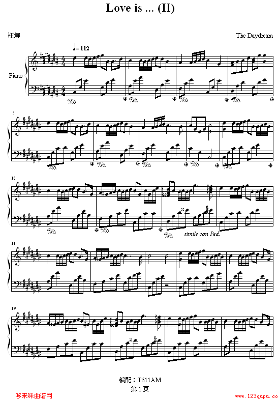 Love is...(II)-The Daydream免费钢琴谱_五线谱:未知 点击: 1000 图片可能经过缩放,手机长按或点开后长按保存,电脑鼠标右键保存.