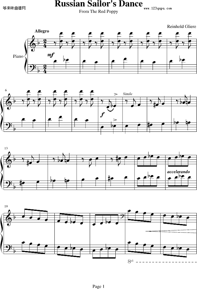 俄罗斯水手舞-格里埃尔免费钢琴谱_五线谱:未知 点击: 1000 图片可能经过缩放,手机长按或点开后长按保存,电脑鼠标右键保存.