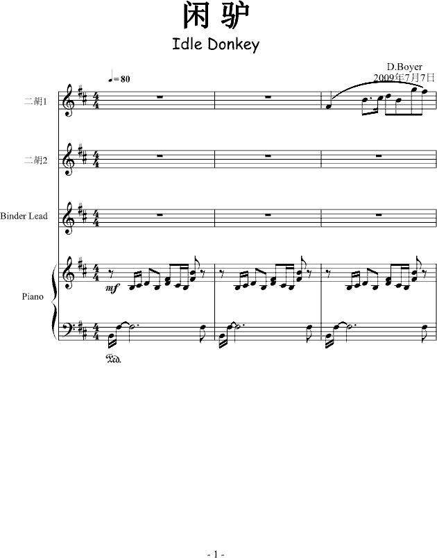 闲驴(二胡+钢琴+合成音色)-钢琴谱(钢琴曲)-DB免费钢琴谱_五线谱: 点击: 1000 图片可能经过缩放,手机长按或点开后长按保存,电脑鼠标右键保存.