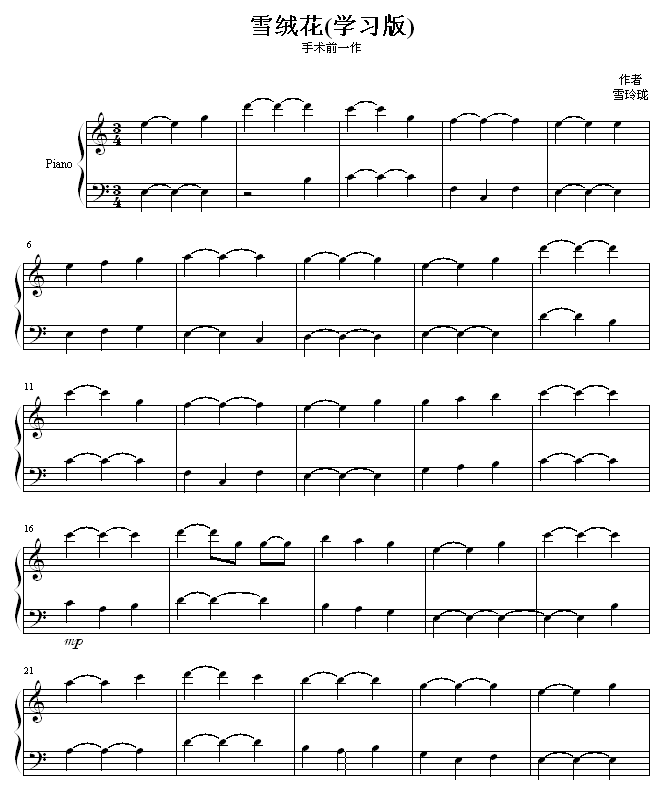 雪绒花 _ 学习版免费钢琴谱_五线谱: 点击: 1000 图片可能经过缩放,手机长按或点开后长按保存,电脑鼠标右键保存.