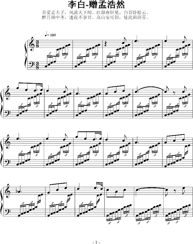 读李白《赠孟浩然》诗有感免费钢琴谱_五线谱:nkhun 点击: 1000 图片可能经过缩放,手机长按或点开后长按保存,电脑鼠标右键保存.