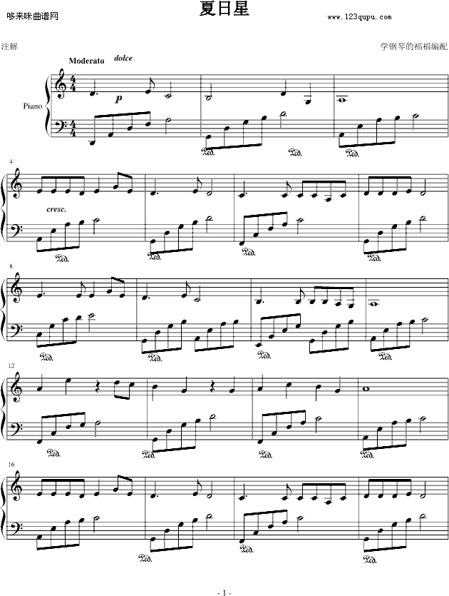 夏日星-动漫影视免费钢琴谱_五线谱:未知 点击: 1000 图片可能经过缩放,手机长按或点开后长按保存,电脑鼠标右键保存.