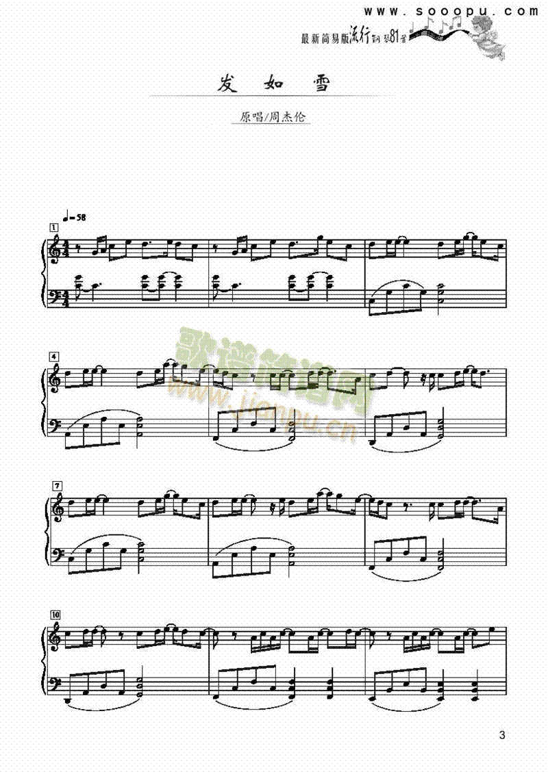 发如雪-简易版 键盘类 钢琴免费钢琴谱_五线谱:周杰伦 点击: 1000 图片可能经过缩放,手机长按或点开后长按保存,电脑鼠标右键保存.