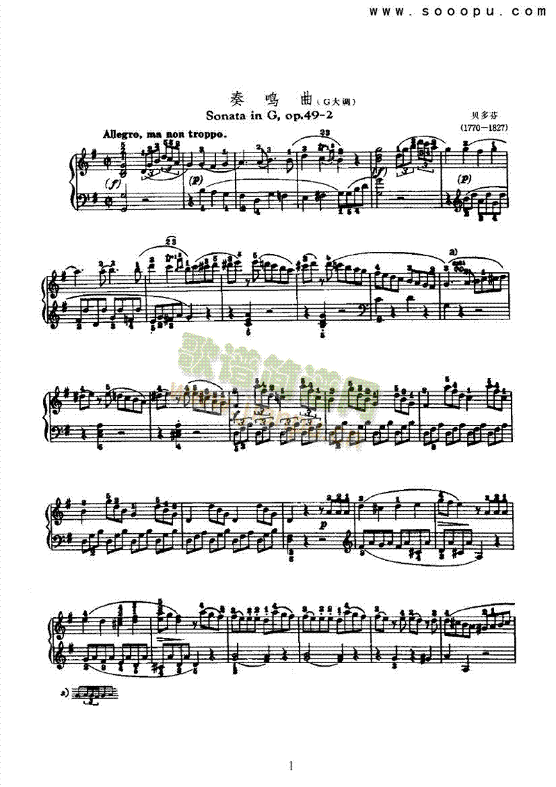 G大调奏鸣曲 键盘类 钢琴免费钢琴谱_五线谱:贝多芬 点击: 1000 图片可能经过缩放,手机长按或点开后长按保存,电脑鼠标右键保存.