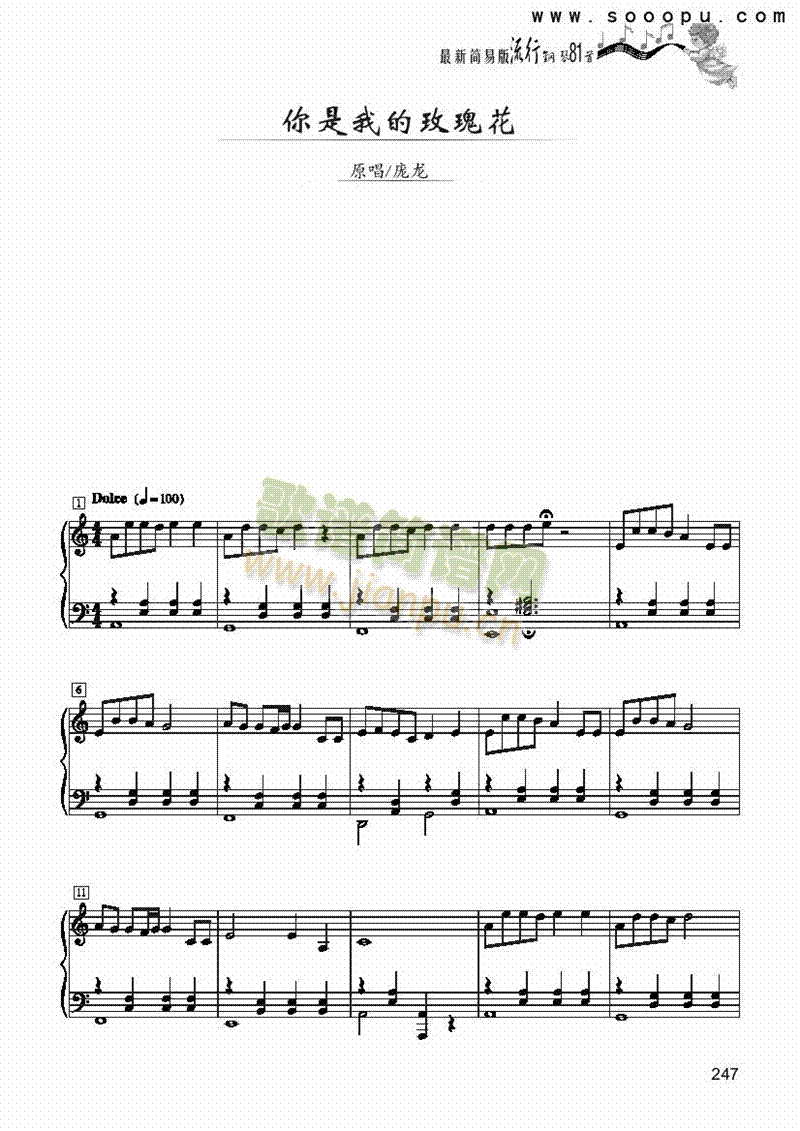 你是我的玫瑰花-简易版 键盘类 钢琴免费钢琴谱_五线谱:庞龙 点击: 1000 图片可能经过缩放,手机长按或点开后长按保存,电脑鼠标右键保存.