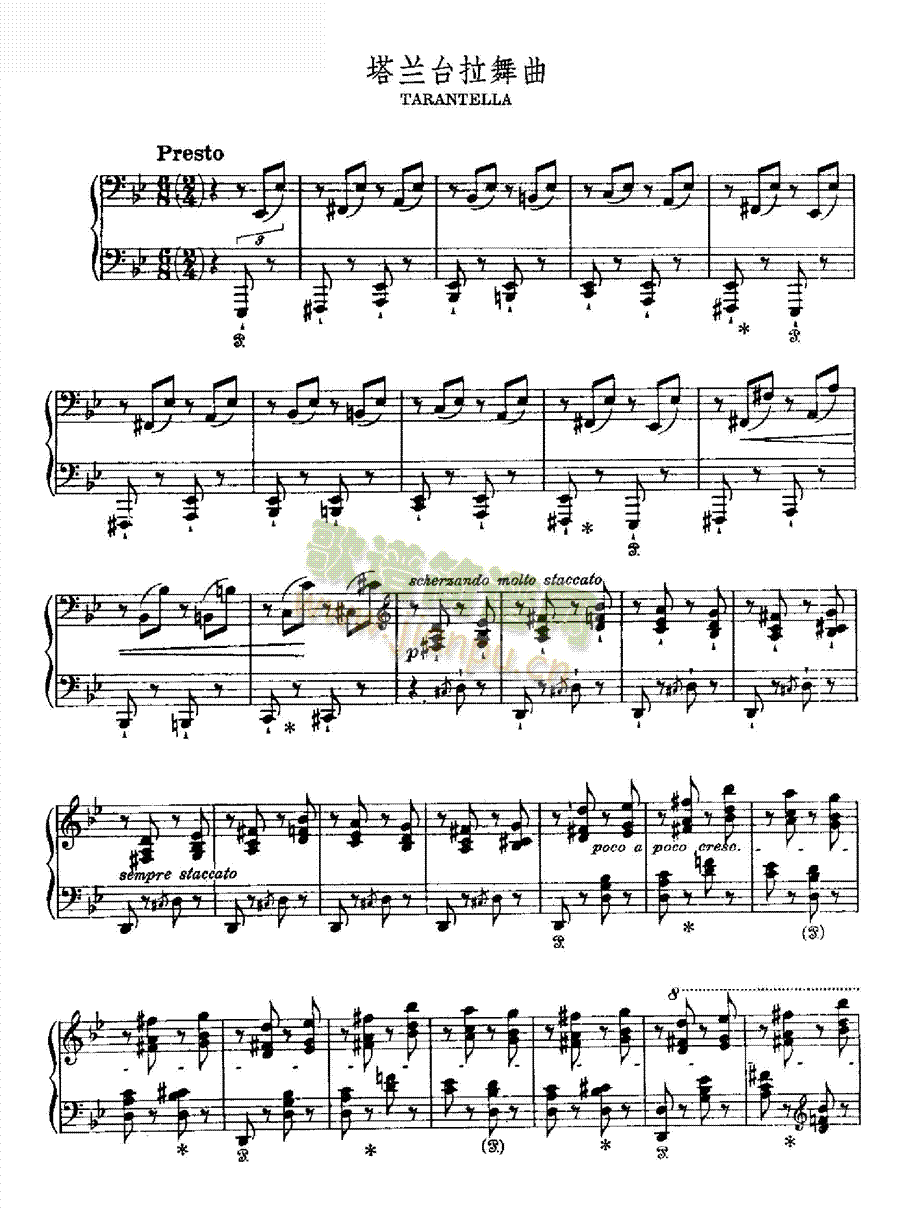 塔兰台拉舞曲 键盘类 钢琴免费钢琴谱_五线谱:F·李斯特 点击: 1000 图片可能经过缩放,手机长按或点开后长按保存,电脑鼠标右键保存.