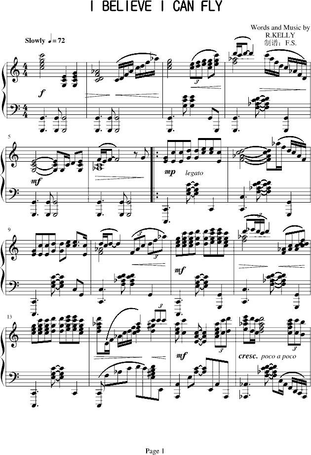 I believe I can fly免费钢琴谱_五线谱:动漫影视 点击: 1000 图片可能经过缩放,手机长按或点开后长按保存,电脑鼠标右键保存.