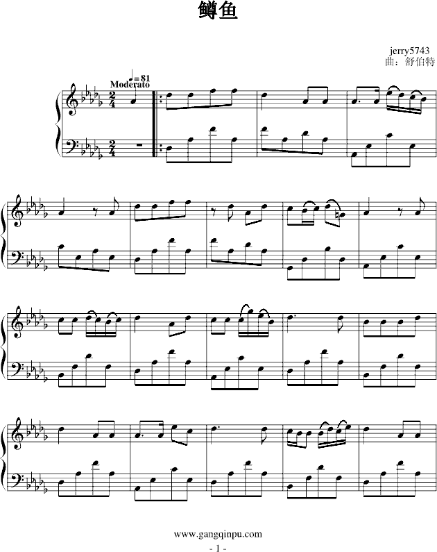 鳟鱼(浪漫版)选段免费钢琴谱_五线谱:舒伯特 点击: 1000 图片可能经过缩放,手机长按或点开后长按保存,电脑鼠标右键保存.