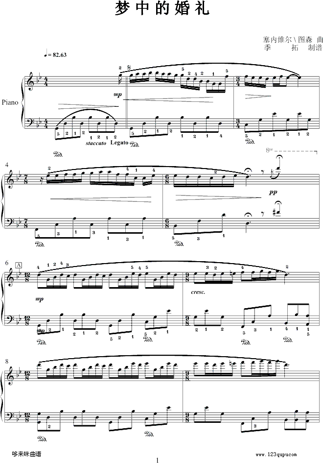 梦中的婚礼-我学钢琴-克莱德曼免费钢琴谱_五线谱:未知 点击: 1000 图片可能经过缩放,手机长按或点开后长按保存,电脑鼠标右键保存.