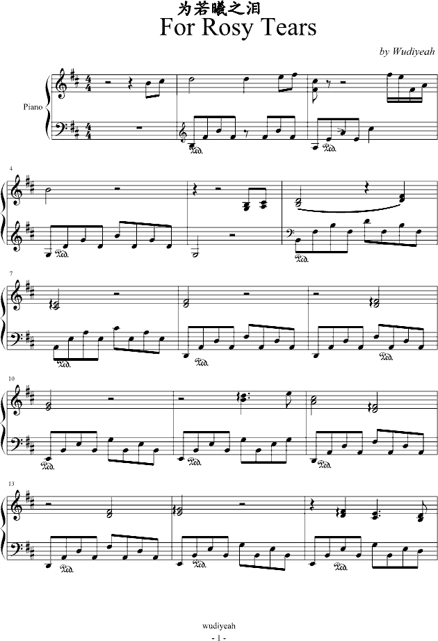 为若曦之泪免费钢琴谱_五线谱/词曲:wudiyeahwudiyeah点击: 1000 图片可能经过缩放,手机长按或点开后长按保存,电脑鼠标右键保存.