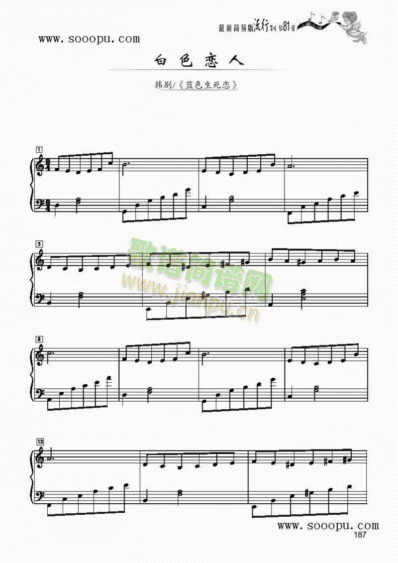 白色恋人-简易版 键盘类 钢琴免费钢琴谱_五线谱:韩剧《蓝色生死恋》 点击: 1000 图片可能经过缩放,手机长按或点开后长按保存,电脑鼠标右键保存.