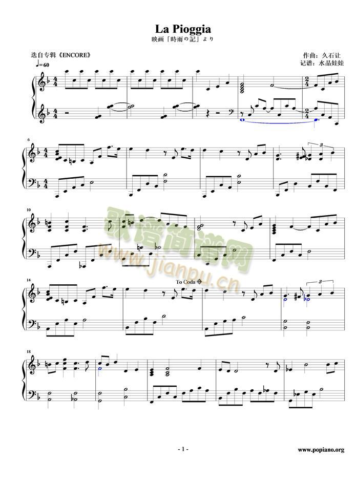La Pioggia免费钢琴谱_五线谱: 点击: 1000 图片可能经过缩放,手机长按或点开后长按保存,电脑鼠标右键保存.