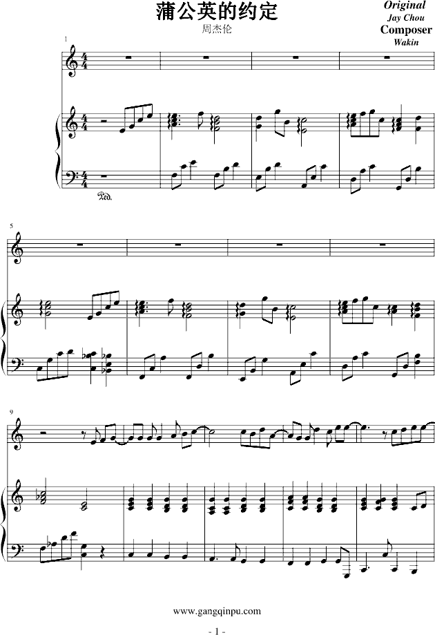 蒲公英的约定-伴奏-钢琴谱(钢琴曲)-周杰伦免费钢琴谱_五线谱: 点击: 1000 图片可能经过缩放,手机长按或点开后长按保存,电脑鼠标右键保存.