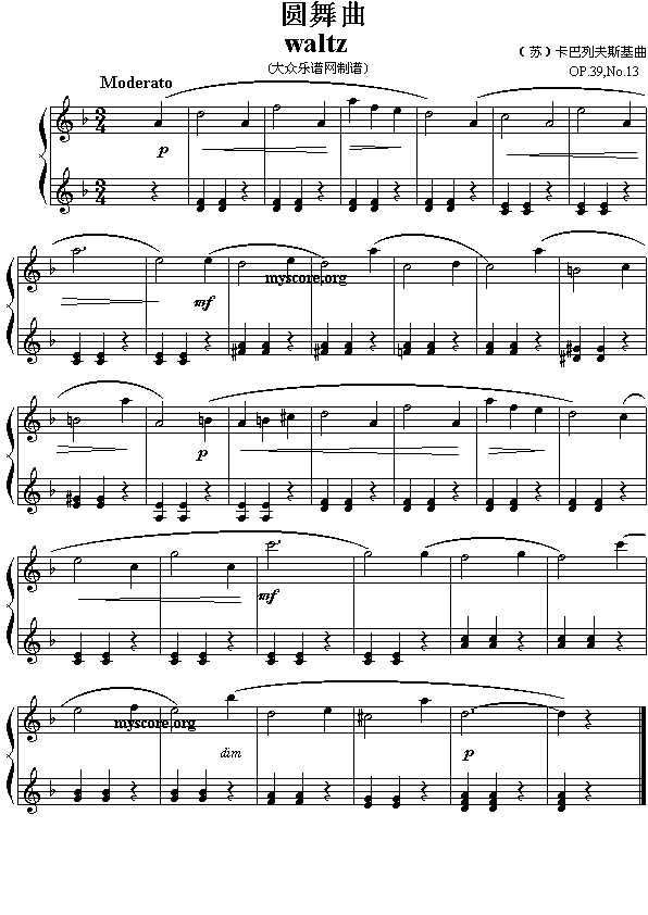 俄罗斯钢琴小品 卡巴列夫斯基:圆舞曲免费钢琴谱_五线谱: 点击: 1000 图片可能经过缩放,手机长按或点开后长按保存,电脑鼠标右键保存.