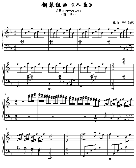 第5章 Eternal Wish免费钢琴谱_五线谱:人鱼 点击: 1000 图片可能经过缩放,手机长按或点开后长按保存,电脑鼠标右键保存.
