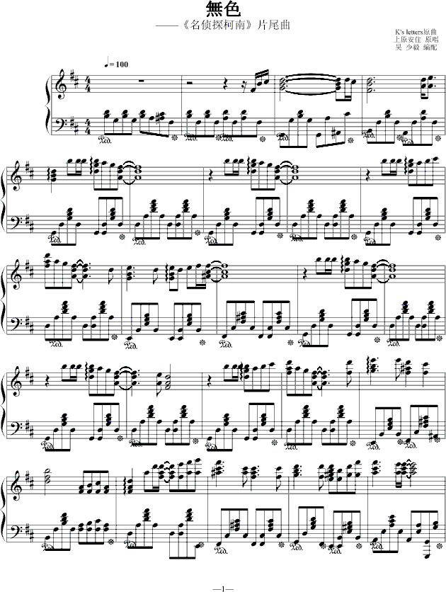 无名-名侦探柯南片尾曲免费钢琴谱_五线谱:名侦探柯南 点击: 1000 图片可能经过缩放,手机长按或点开后长按保存,电脑鼠标右键保存.
