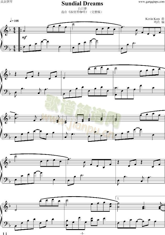 Sundial Dreams(白日梦)免费钢琴谱_五线谱:KevinKern 点击: 1000 图片可能经过缩放,手机长按或点开后长按保存,电脑鼠标右键保存.