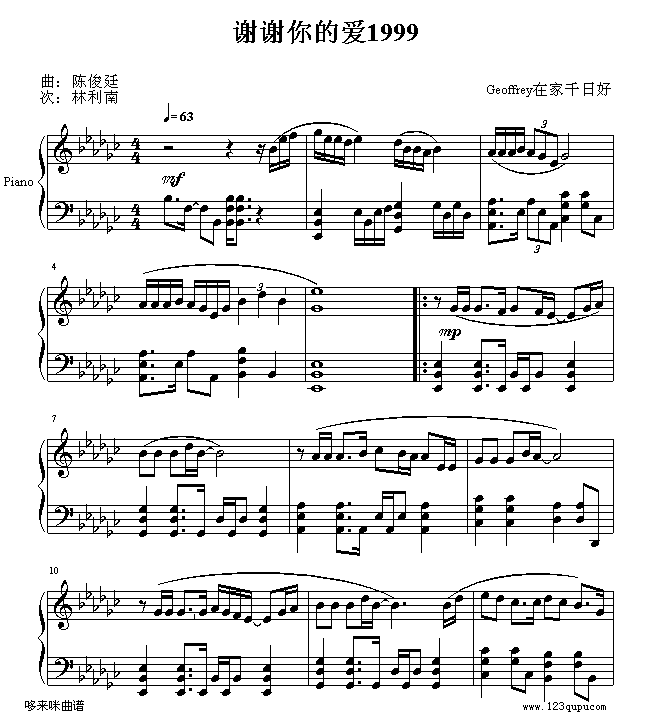 谢谢你的爱1999-谢霆锋免费钢琴谱_五线谱:未知 点击: 1000 图片可能经过缩放,手机长按或点开后长按保存,电脑鼠标右键保存.