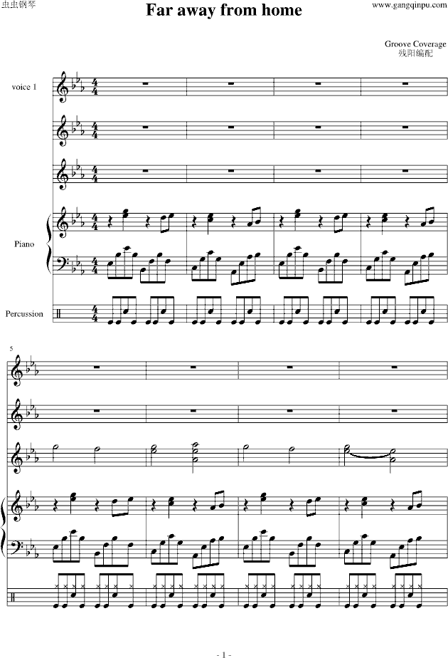 Far away from home-钢琴谱(钢琴曲)-Groove Coverage免费钢琴谱_五线谱: 点击: 1000 图片可能经过缩放,手机长按或点开后长按保存,电脑鼠标右键保存.