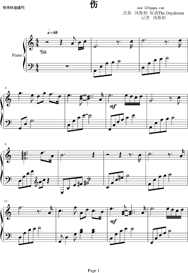 伤-The Daydream免费钢琴谱_五线谱:未知 点击: 1000 图片可能经过缩放,手机长按或点开后长按保存,电脑鼠标右键保存.