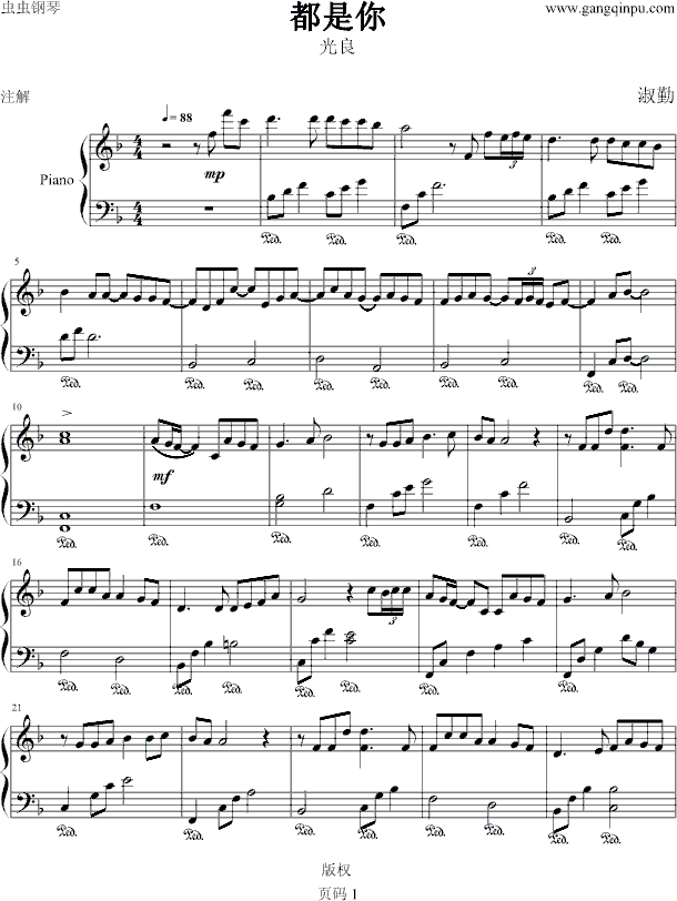 都是你-〔简易版〕免费钢琴谱_五线谱:光良 点击: 1000 图片可能经过缩放,手机长按或点开后长按保存,电脑鼠标右键保存.