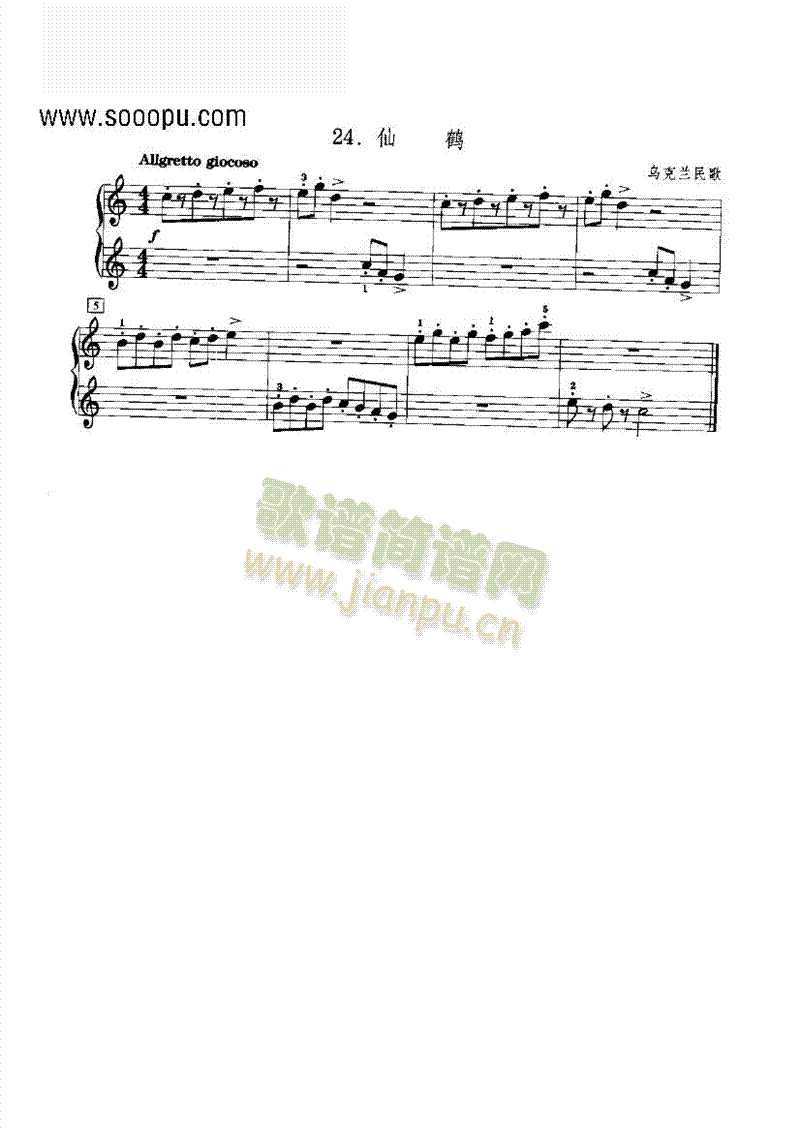 仙鹤 键盘类 钢琴免费钢琴谱_五线谱:儿童钢琴 点击: 1000 图片可能经过缩放,手机长按或点开后长按保存,电脑鼠标右键保存.