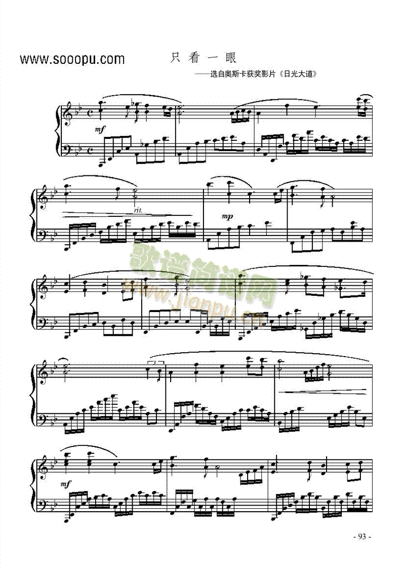 只看一眼 键盘类 钢琴免费钢琴谱_五线谱:电影《日光大道》 点击: 1000 图片可能经过缩放,手机长按或点开后长按保存,电脑鼠标右键保存.