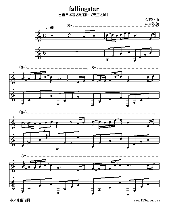 天空之城主题曲-fallingstar-天空之城免费钢琴谱_五线谱:未知 点击: 1000 图片可能经过缩放,手机长按或点开后长按保存,电脑鼠标右键保存.