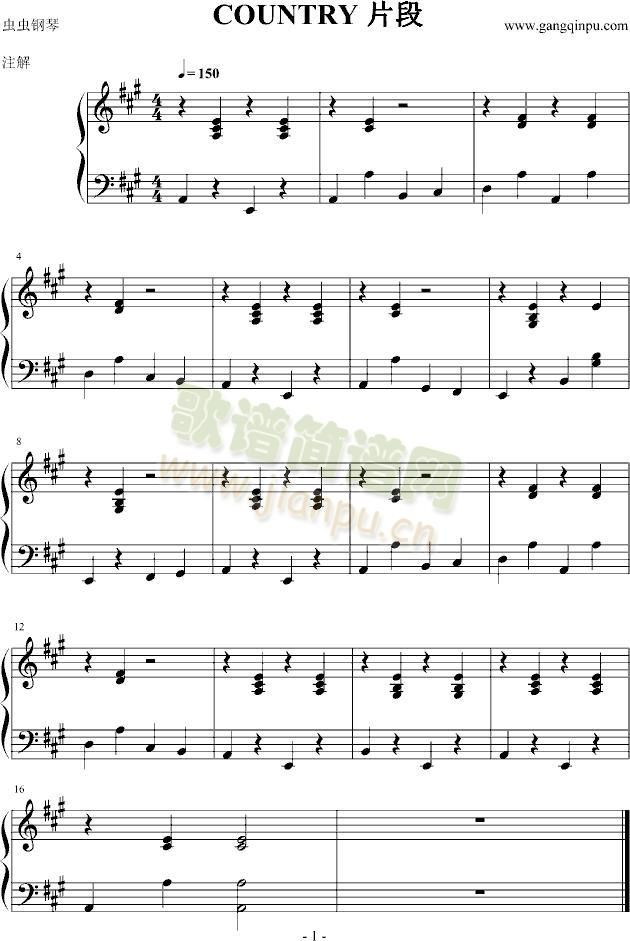 乡村片段免费钢琴谱_五线谱:欧美经典 点击: 1000 图片可能经过缩放,手机长按或点开后长按保存,电脑鼠标右键保存.