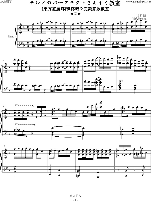 [东方红魔乡]琪露诺的完美算数教室-钢琴谱(钢琴曲)-影视免费钢琴谱_五线谱: 点击: 1000 图片可能经过缩放,手机长按或点开后长按保存,电脑鼠标右键保存.