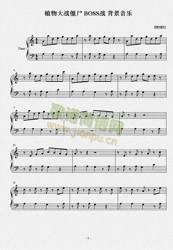 植物大战僵尸boss战背景音乐免费钢琴谱_五线谱: 点击: 1000 图片可能经过缩放,手机长按或点开后长按保存,电脑鼠标右键保存.