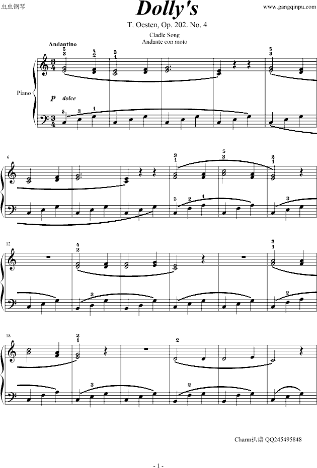 洋娃娃之梦(附指法)-钢琴谱(钢琴曲)-奥斯顿免费钢琴谱_五线谱: 点击: 1000 图片可能经过缩放,手机长按或点开后长按保存,电脑鼠标右键保存.